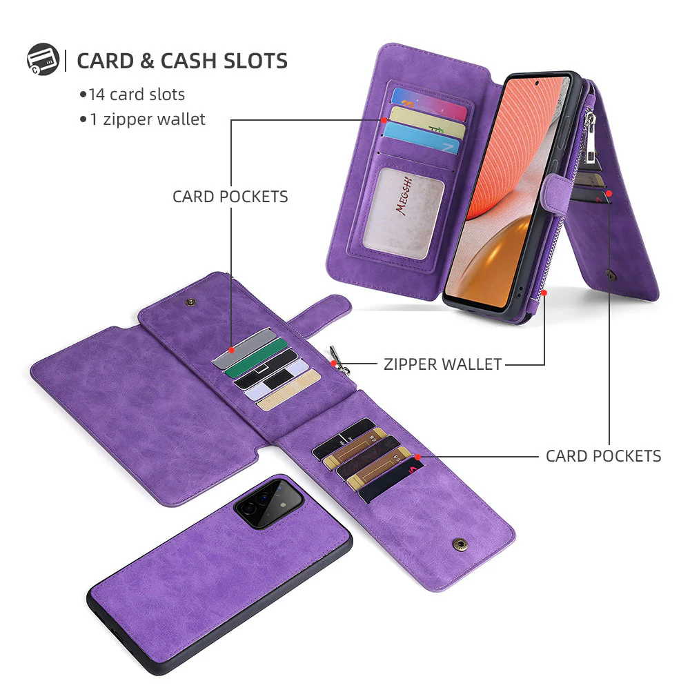- [Wallet Case Design] Perfect combination of a wallet and cell phone case ,with Id credit card slots, a zipper bag can hold change or earphones, etc.